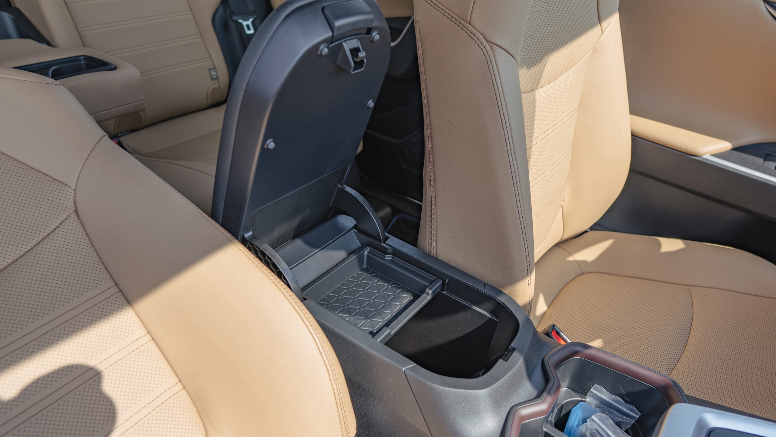 - Convenience: Smart key with push start, ambient lighting, wireless charger, auto-dimming mirror, USB-A front + two USB-C rear, 12V power outlets