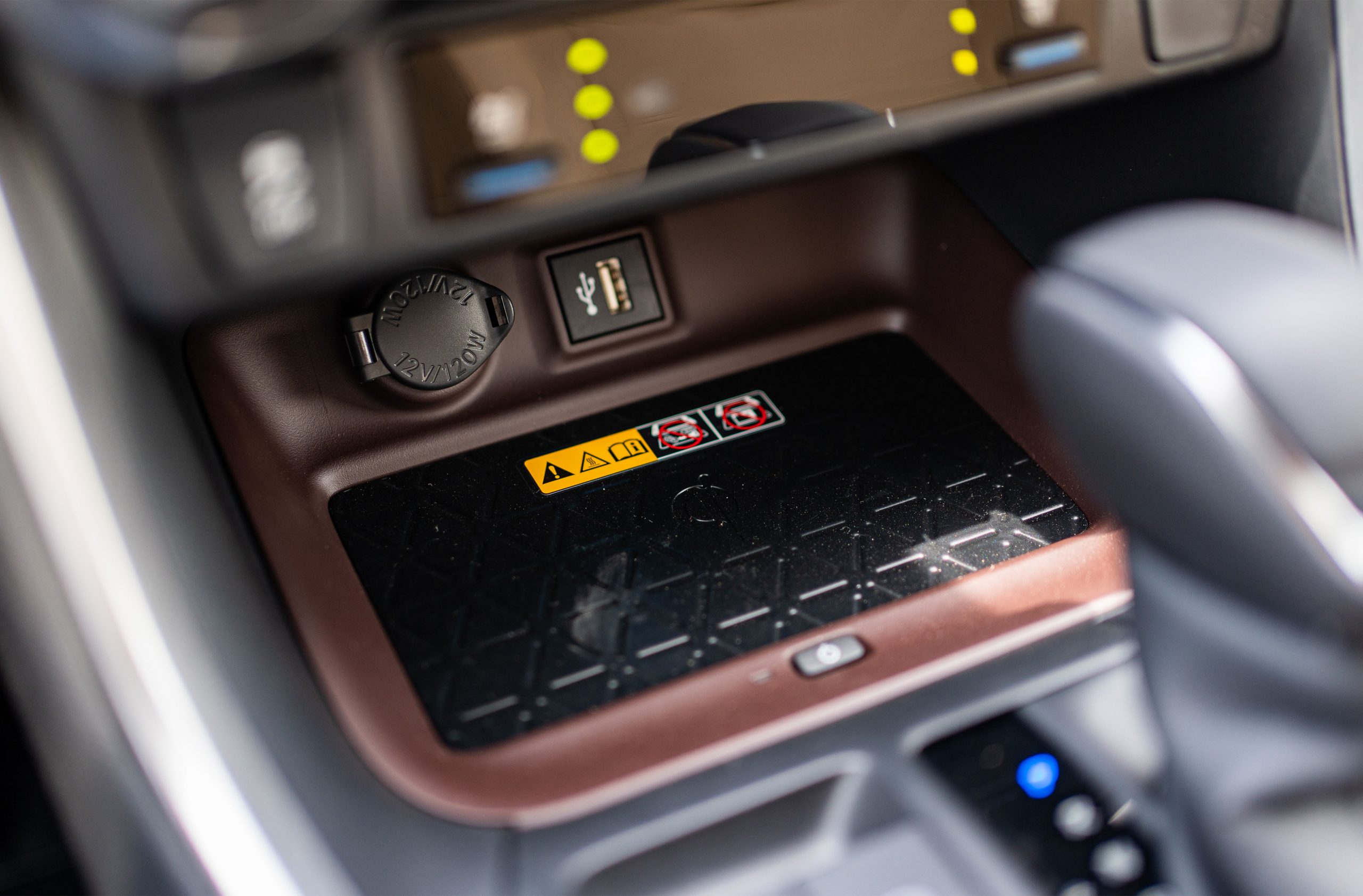 - Convenience: Smart key with push start, ambient lighting, wireless charger, auto-dimming mirror, USB-A front + two USB-C rear, 12V power outlets