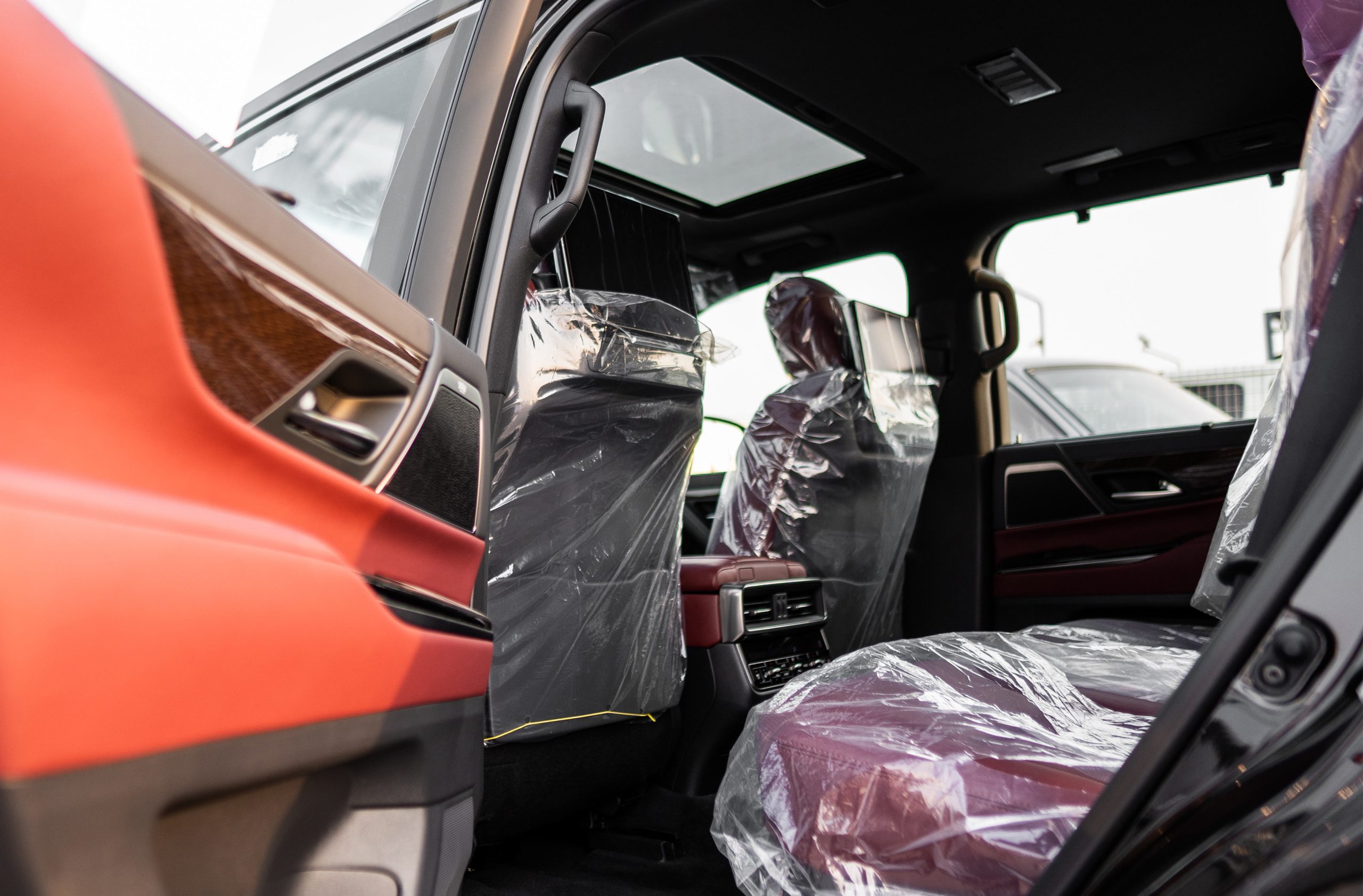 - Upholstery: Semi-aniline leather (Overtrail standard) with black open-pore wood trims